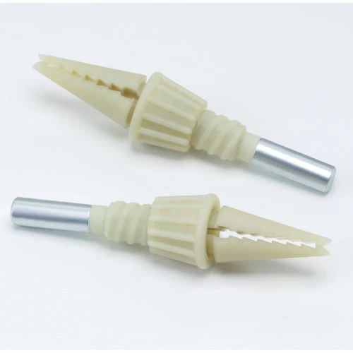 3M™ Mini Mandrel is a tool attachment that holds a 1 inch wide strip of Scotch-Brite™ non-woven material, enabling the user to clean, polish, or deburr the inside diameter of a pipe or other cylinder. The 2-7/8 inch long mini mandrel fits onto a rotary tool like a die grinder or drill. The shank of the mandrel is 1/4 inch diameter and compatible with a 1/4 inch power tool collet or drill chuck.