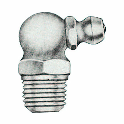 Carbon steel fitting with zinc-plated finish. Used on industrial machines and heavy equipment.