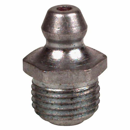 Carbon steel fitting with zinc-plated finish. Used on industrial machines and heavy equipment.