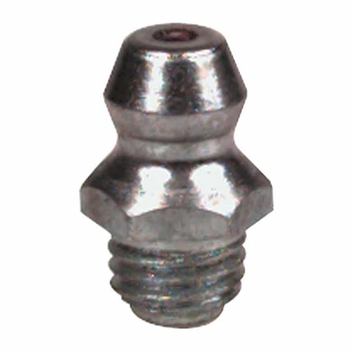 Carbon steel fitting with zinc-plated finish. Used on industrial machines and heavy equipment.