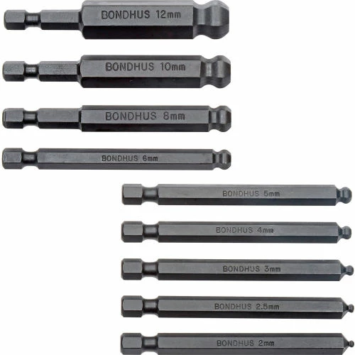 Balldriver® Tip Power Bit Set of 9 pcs w/ProGuard™ Finish. Set Includes: 2mm, 2.5mm, 3mm, 4mm, 5mm, 6mm, 8mm, 10mm & 12mm.