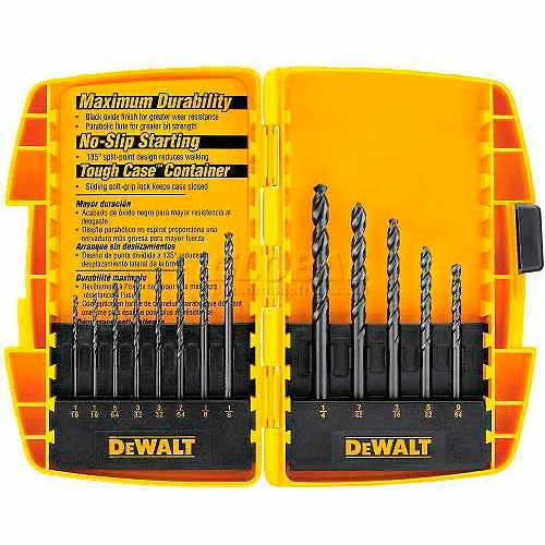 - This set offers 13 black oxide drill bits ranging from 1/16″ – 1/4″ bits and are stored in a tough case container