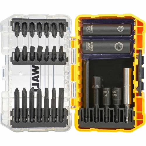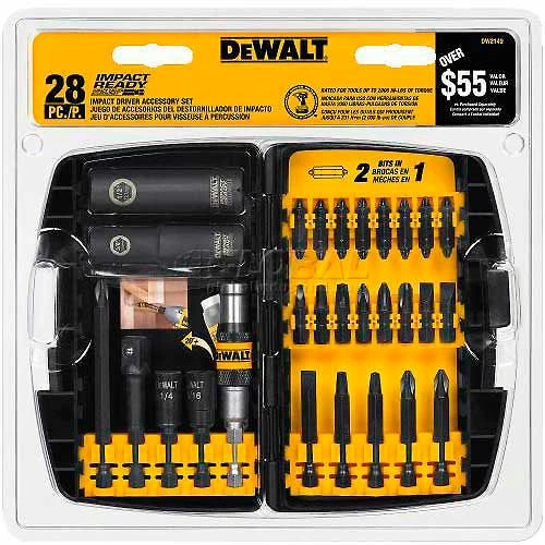 - 1″ Bits: PH1, PH2, PH3, SL6, SL8, SQ1, SQ2, SQ3; 2″ Power bits: (2)PH2, SL8, (2)SQ23; 1/2″ Bits: PH2 Double Ended Bits: (8)PH2 Nutdrivers: 1/4″, 5/16″ Socket Adapter: 1/4″ to 3/8″ Sockets: 3/8″, 1/2″ Magnetic Bit Tip Holder:1