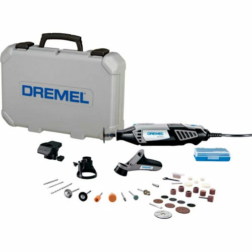 The Dremel 4000 variable speed rotary tool offers the highest performance and most versatility of all Dremel rotary tools. The increased strength of its motor plus electronic feedback circuitry enables consistent performance at all speed levels. Dremel 4000 can use all existing Dremel accessories and attachments plus high-performance attachments to complete the widest range of projects. A slim, ergonomic body provides a 360-degree grip zone for comfort and control in any grip position.