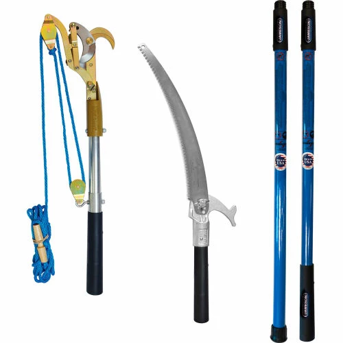 - Includes 1.75″ Double Pulley Pruner, Pruner Rope, Saw Head, 16″ Tri-Cut Blade, 6′ BLC Base Pole and 6′ BLC Extension Pole