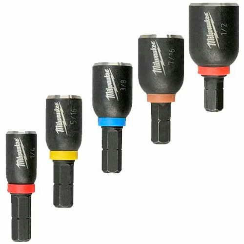 Milwaukee® SHOCKWAVE Impact Duty™ Insert Magnetic Nut Drivers are engineered for extreme durability and up to 10x life. Made from proprietary steel and heat treated to control hardness, the SHOCKWAVE™ Impact Duty Magnetic Nut Drivers feature a powerful magnet allowing for a secure grip and unyielding bit engagement. The bits feature color-coded rings for quick and easy size identification and a chamfered edge to allow for fastening in tight spaces. Designed for use with Milwaukee® SHOCKWAVE Magnetic Bit Tip Holders 2.36″, 3″, 6″, 12″, 30° Knuckle™ Pivoting Bit Holder and all bit tip holders.