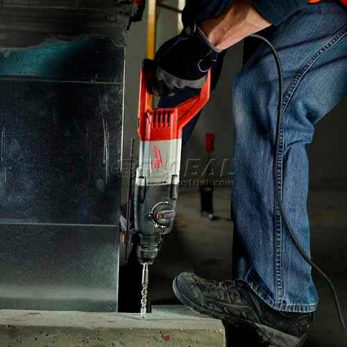 Get up to 40% faster drilling and 15% more life, even in the toughest applications. Designed for the toughest applications, the 7/8″ SDS-Plus D-Handle Rotary Hammer lasts longer and drills faster than other tools in its class. With a powerful 7-amp motor, it delivers 0-1,500 RPM, 0-5,625 BPM and 1.8 ft-lbs of torque. You’ll get superior drilling speed without sacrificing the power needed to drill larger holes.At just 5.8 pounds, this rotary hammer is easy to use and helps avoid user fatigue. A mechanical clutch protects the motor when the bit binds, and three-mode operation offers maximum versatility. The kit includes a side handle, depth rod and carrying case.