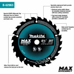 Makita® Carbide-Tipped Max Effcy Ultra-Thin Kerf Circular Saw Blade, Framing, 6-1/2"Dia, 25 TPI