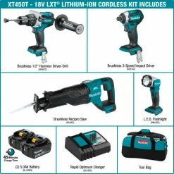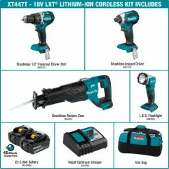 Makita® LXT® Cordless 4-Pc. Combo Kit, 5.0Ah, 18V, Lithium-Ion, Brushless, 1550 lbs Torque