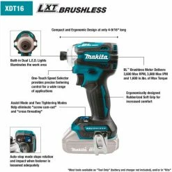 Makita® LXT® Brushless Cordless Impact Driver Kit, 5.0Ah, Li-Ion, 18V, 0-3400RPM, 5"L